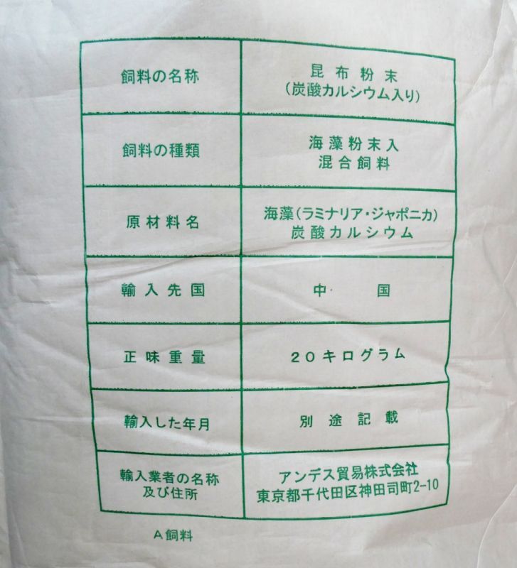 昆布微粉末-120メッシュ【20kg】酪農・農業用海藻微粉末(ラミナリアジャポニカ=真昆布) [TAE-LJ120020b]