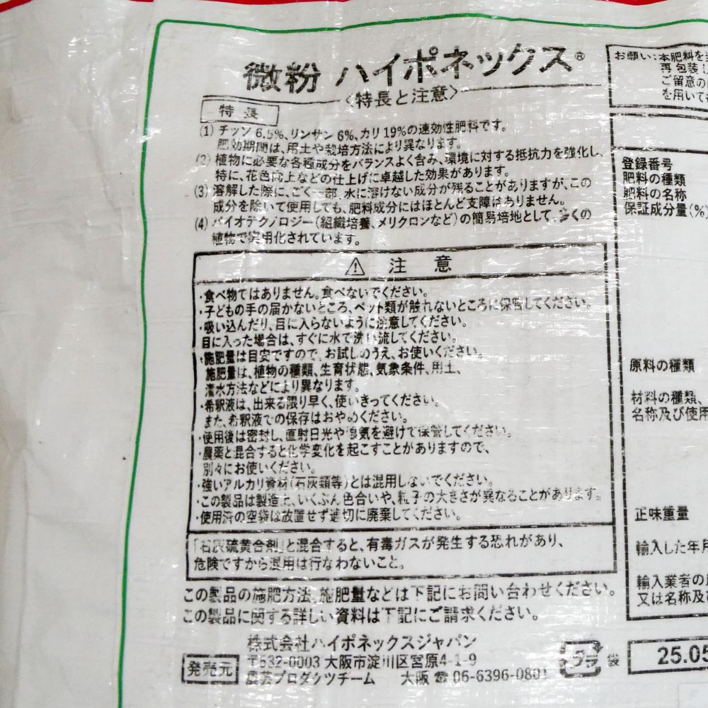・微粉ハイポネックスは品質の高い原料を使い、植物に必要な各種栄養分をバランス良く含んでいる肥料です。特に加里分が高くがっちりした苗を作ります。家庭園芸はもちろん水耕栽培などプロ分野でも広く使われています。