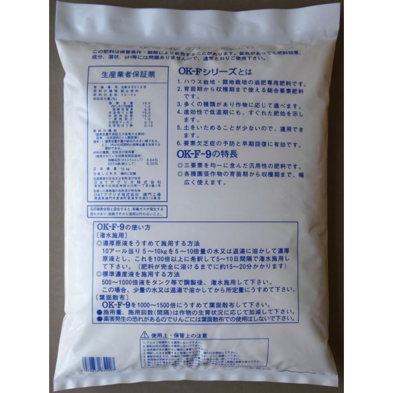 - > 水溶性園芸肥料|OK-F-9(N15-P15-K15)【10kg】施設栽培の追肥専用肥料(粉末液肥)|OATアグリオ
