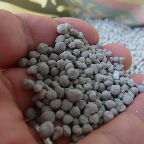 リン鉱石に硫酸を加えて分解させ、得られるのが過リン酸石灰。重過リン酸石灰はリン鉱石に硫酸ではなく、リン酸液を加えて作用させて得られるものです。そのため重過リン酸石灰は通常の過リン酸石灰のほぼ2倍のリン酸を含み、少ない量で効果的に肥効を表します。