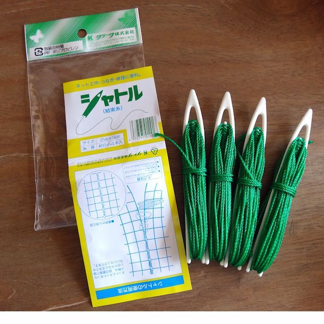 ネットの工作、繋ぎ、修理に便利な結束糸「シャトル」(約6m巻4本入り)【グリーン】【いくつでも全国一律送料530円】 [TKK-SH0604]