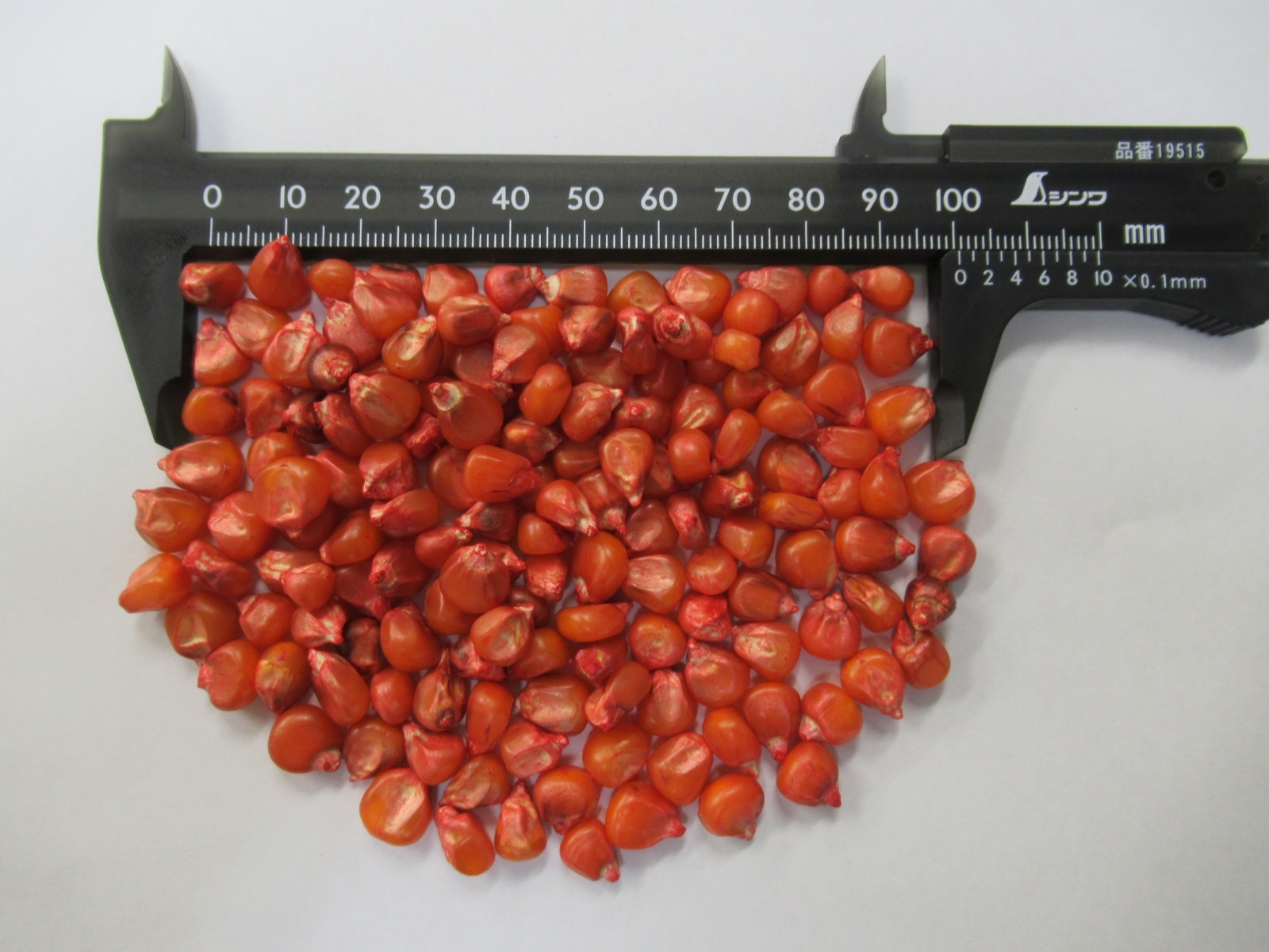 飼料作物のトウモロコシの一種デントコーン(馬歯種)です。粒の側面が固い澱粉層、冠部は柔らかい澱粉層からできているため、成熟するにつれて柔らかい冠部にくぼみができ馬の歯のようになるのでデントコーンと呼ばれます。コーンスターチ(デンプン)、飼料用、近年ではバイオエタノールの原料として利用されています。