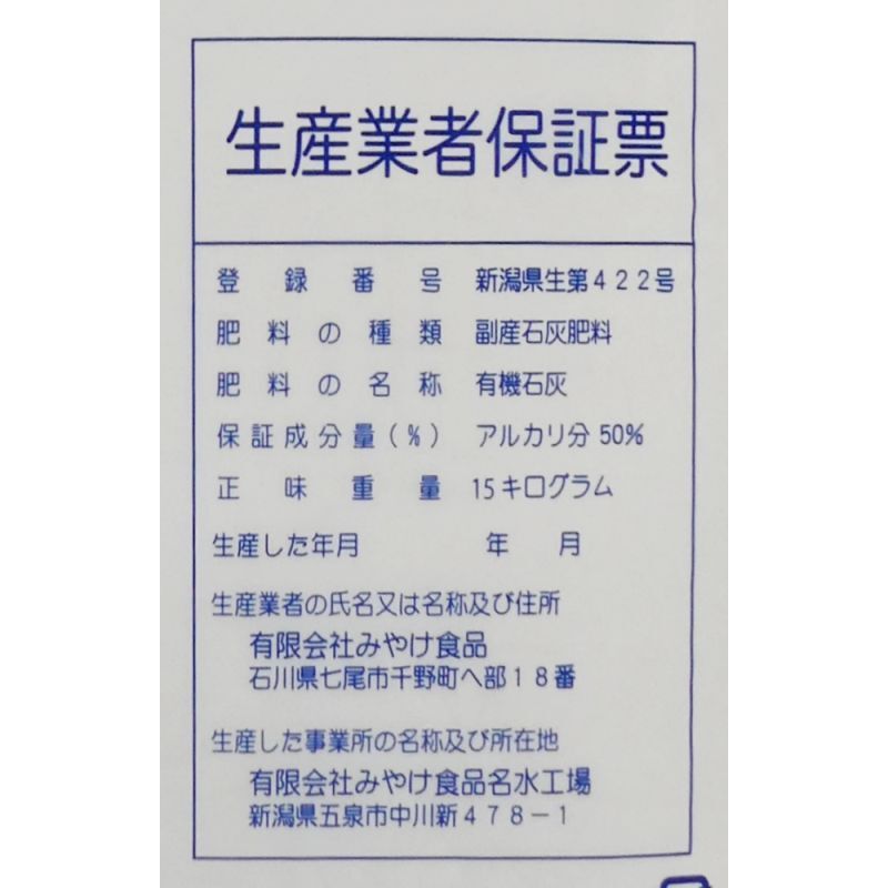 オーガニック卵殻石灰(たまごの殻)アルカリ分50%【15kg】卵殻膜の強力アミノのチカラ|100%有機石灰質肥料【有機JAS適合資材】
