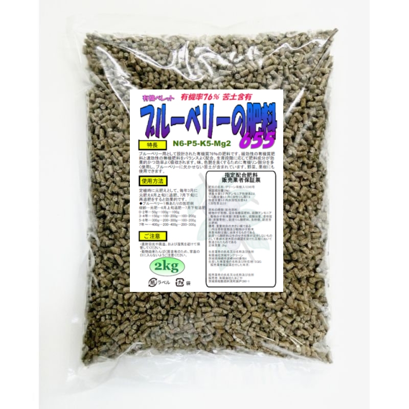 [値下げ]苦土入りブルーベリーの肥料655(N6-P5-K5-Mg2)【2kg】有機率76% [TSN-BB002]