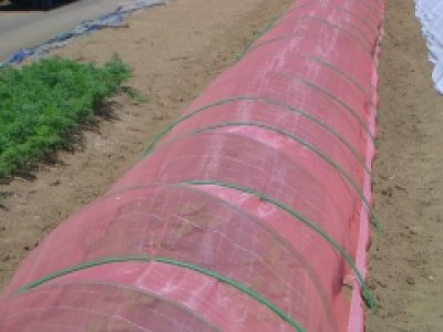 ・赤色のPE製細糸(色彩作用)で微細害虫の侵入を大幅に軽減します。