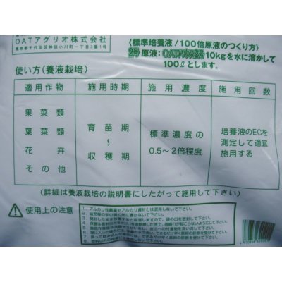 ・「OATハウス肥料」は、長年の養液栽培技術を生かし、高度に精製された原料を組み合わせた肥料です。